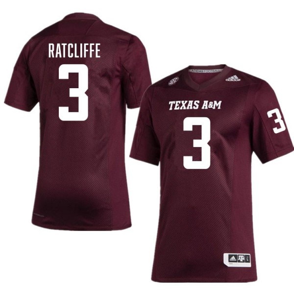 • Men Marcus Ratcliffe Maroon Texas A&M Aggies #3 College Football University Jerseys