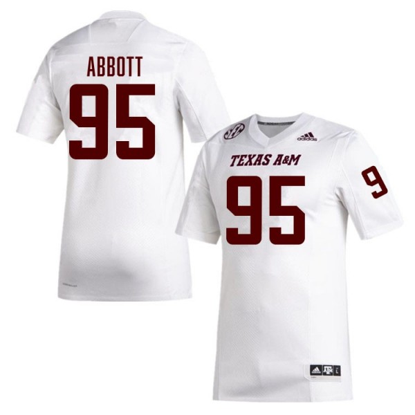 Mens Alex Abbott White Texas A&M Aggies #95 College Football Player Jersey 721486-794