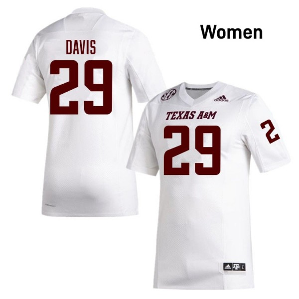 • Women Myles Davis White Texas A&M Aggies #29 College Football Embroidery Jerseys