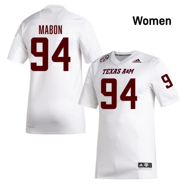 • Women Nathan Mabon White Texas A&M Aggies #94 College Football High School Jerseys