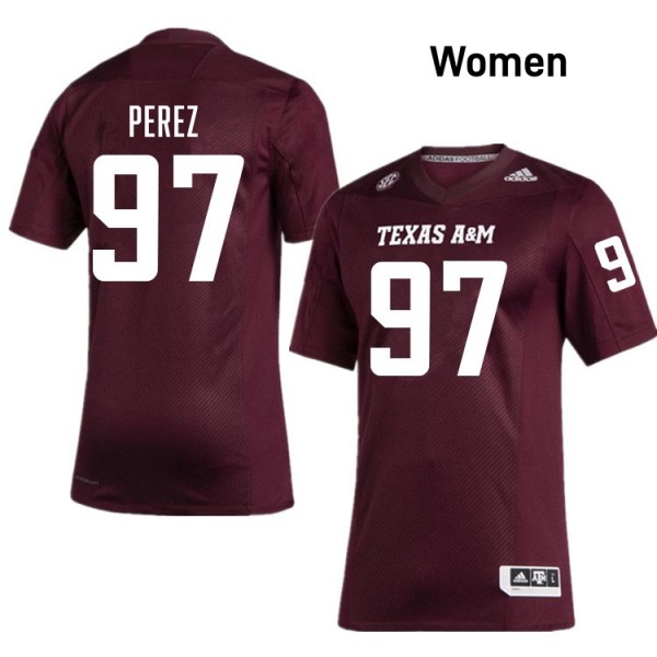 • Women's Alessandro Perez Maroon Texas A&M Aggies #97 College Football Stitched Jerseys