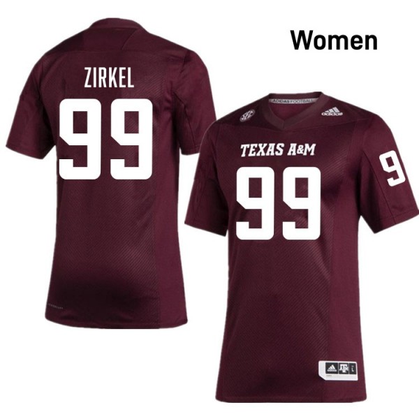 • Women's Jared Zirkel Maroon Texas A&M Aggies #99 College Football 2025 Jerseys