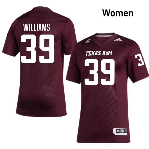 • Women Whitaker Williams Maroon Texas A&M Aggies #39 College Football Stitched Jersey