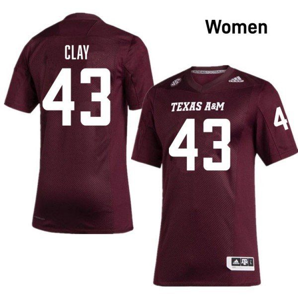 Women Zachary Clay Maroon Texas A&M Aggies #43 College Football Official Jersey 149587-218