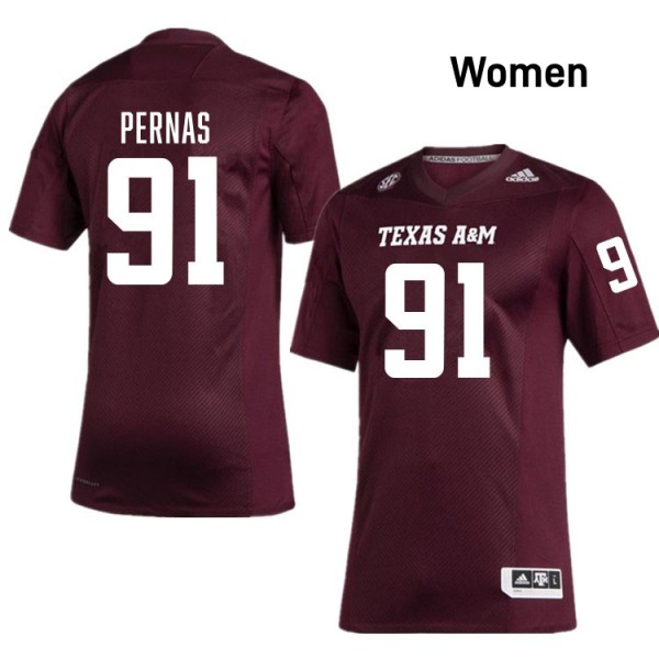 • Womens Lucas Pernas Maroon Texas A&M Aggies #91 College Football Game Jersey