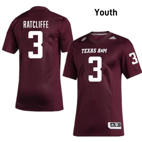 • Youth Marcus Ratcliffe Maroon Texas A&M Aggies #3 College Football Official Jerseys