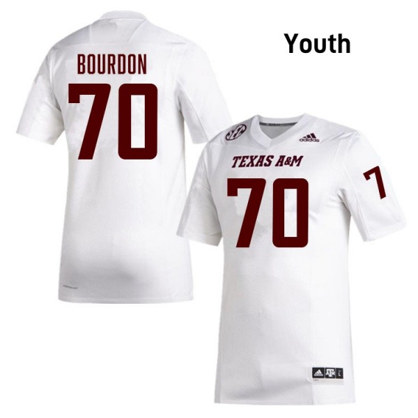 • Youth Robert Bourdon White Texas A&M Aggies #70 College Football 2025-26 Jerseys